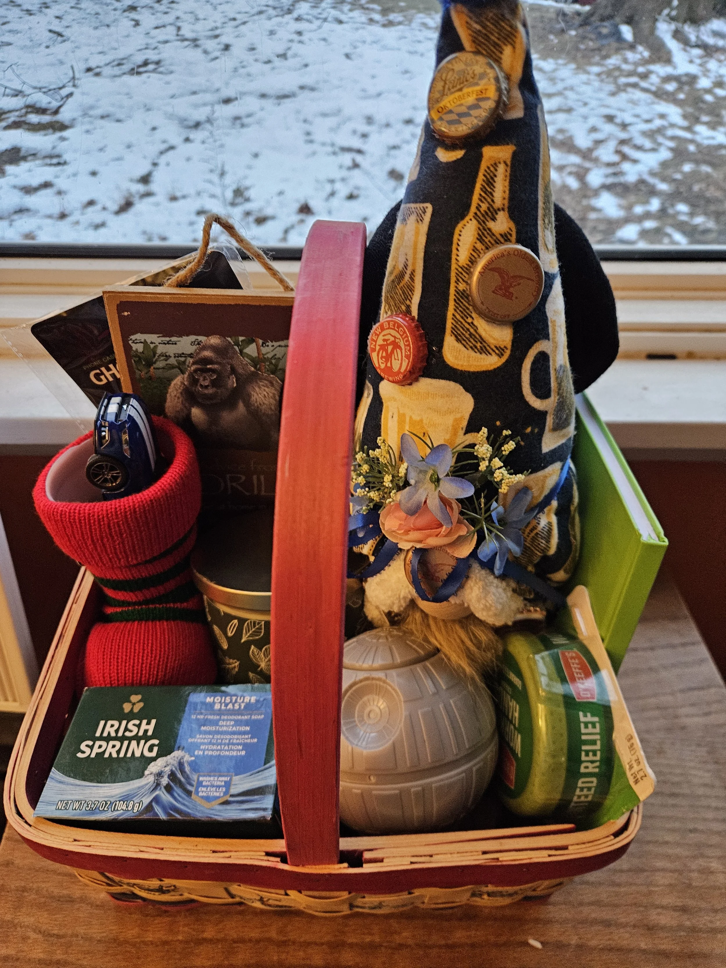 Raffle baskets will be pictured below as we get them in. Last year we had over 70 items donated. Tickets will be $5 for a sheet of 25 and sold during the Bazaar Dec. 10th & 11th 10am to 5pm. The tickets will be drawn at 5pm on Sunday. You do not need to be present to win.